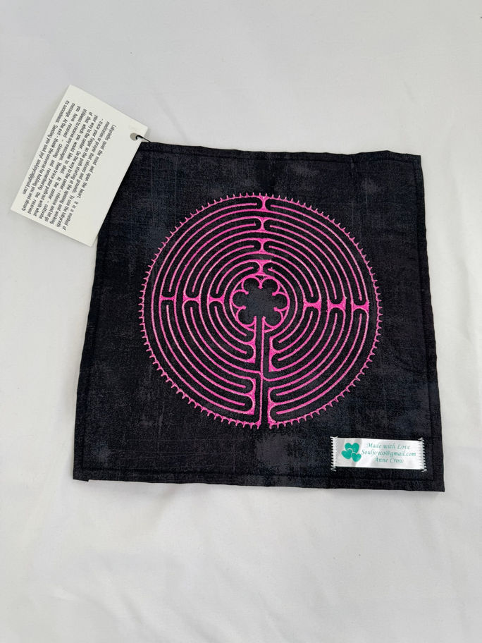 Bring the ancient practice of labyrinth walking right to your fingertips! Our handcrafted finger labyrinths offer a portable meditation experience that requires no travel—just you, your fingertip, and a moment of peace. Each one is lovingly designed on carefully selected fabric, featuring labyrinth patterns that invite contemplation and mindfulness. Approximately 8.5 - 9.75 " Square